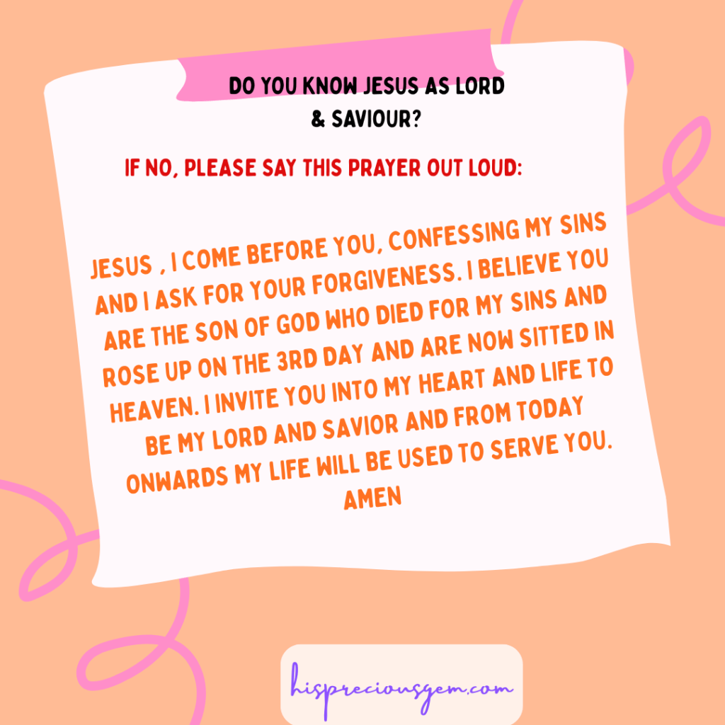 Do you know Jesus as Lord and Saviour? If no, please say this prayer out loud: